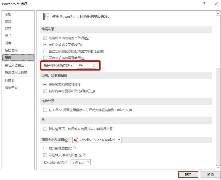 在默认情况下,PowerPoint的最多可取消操作次数只有短短的20次,远远少于大家平时使用的Word和Excel。