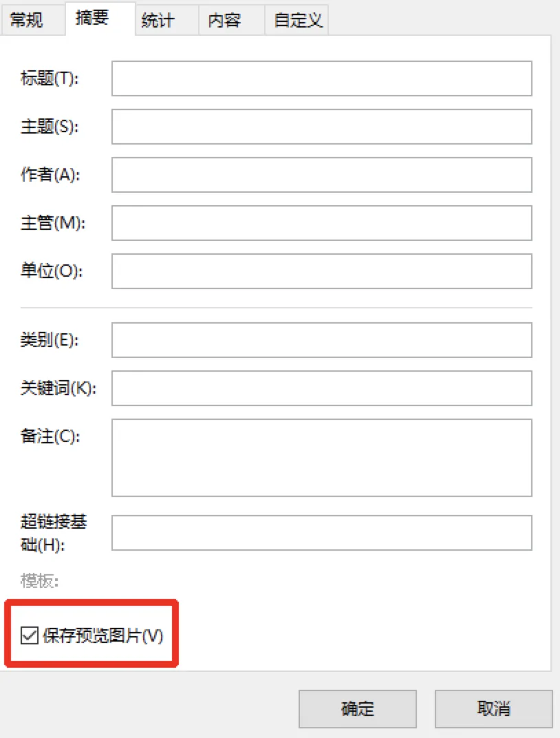 设置方法:信息-属性-高级属性-摘要-保存预览图
