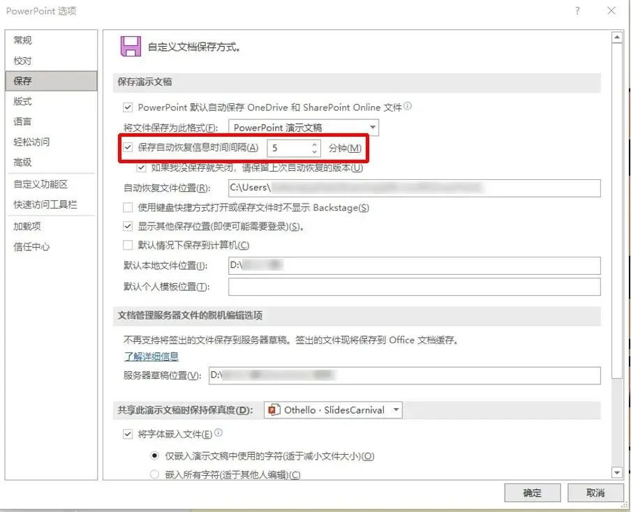 把自动保存的时间调更短,这样电脑发生故障意外,你努力做的PPT也能及时被保存下来。