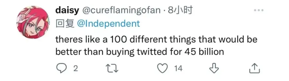 还是有不少网友满头问号:“世界上至少有100件事情比巨款买推特要强。”