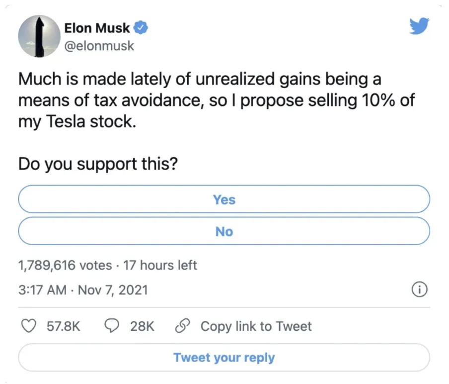 而且马斯克很喜欢在推特上发起投票,无论是这次收购推特,还是去年减持套现50亿美元的特斯拉股票,都看似跟从了投票结果。