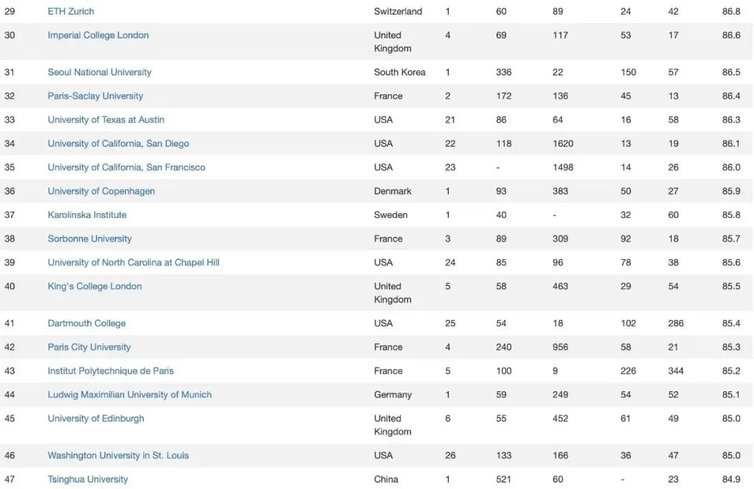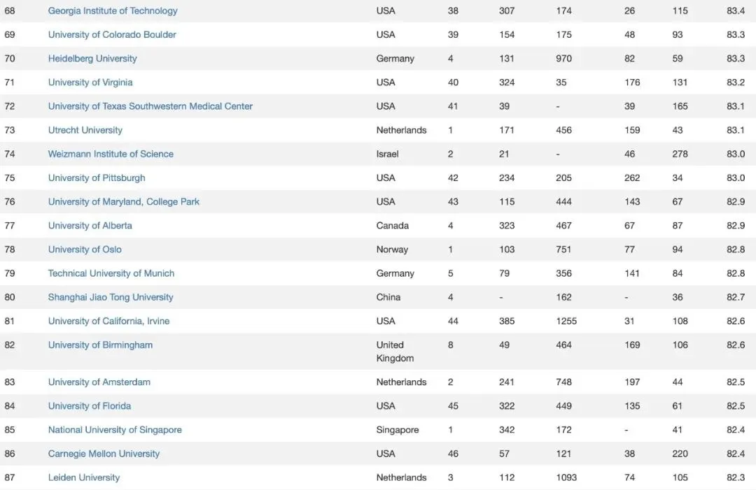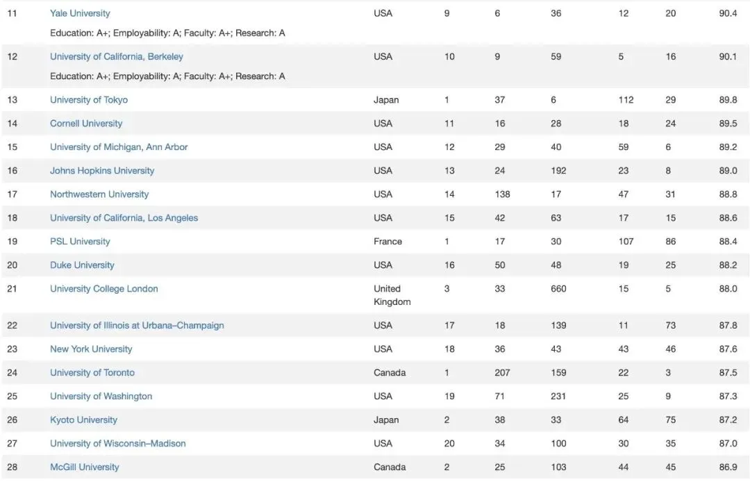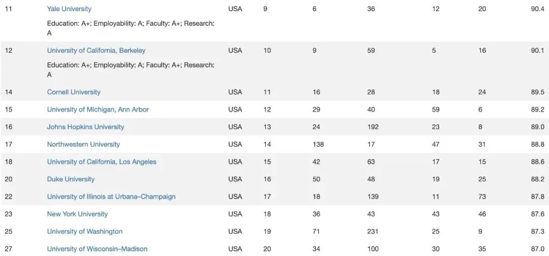 榜单概览:美国高校依旧领跑全球