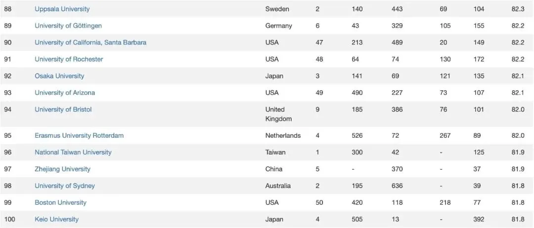 以下为2022-2023年度CWUR世界大学Top100详细榜单: