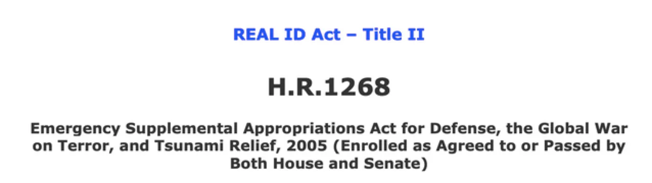 Real ID可谓渊源已久,也是美国安全框架的重要组成部分。早在2005年,基于9/11委员会的建议,国会通过了《真实身份法案》(REAL ID Act),督促联邦政府“为颁发身份证件制定标准”。