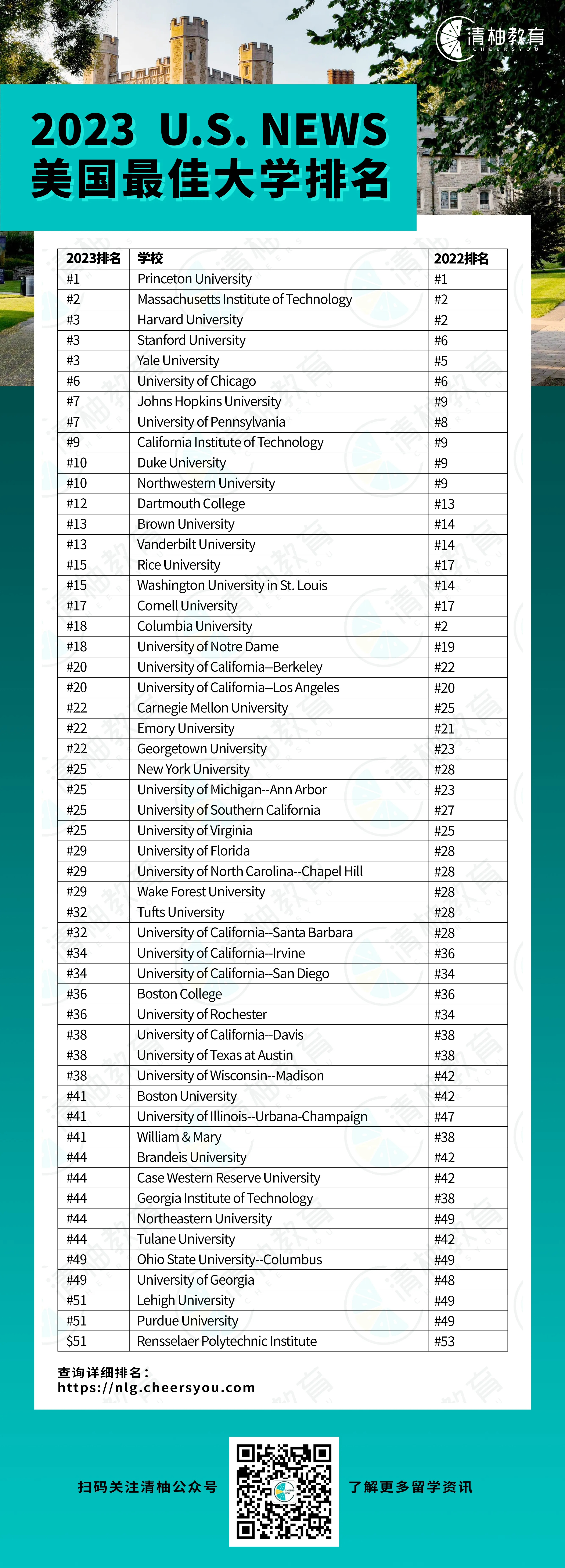 清柚这就为大家揭晓U.S. News 2023年National Unviersity新榜单数据,并同步分析下今年的排名变化情况。