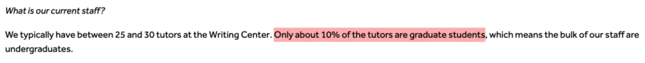 众所周知,writing center的tutor大部分都由本校生组成,并且绝大多数还是本科在读生。