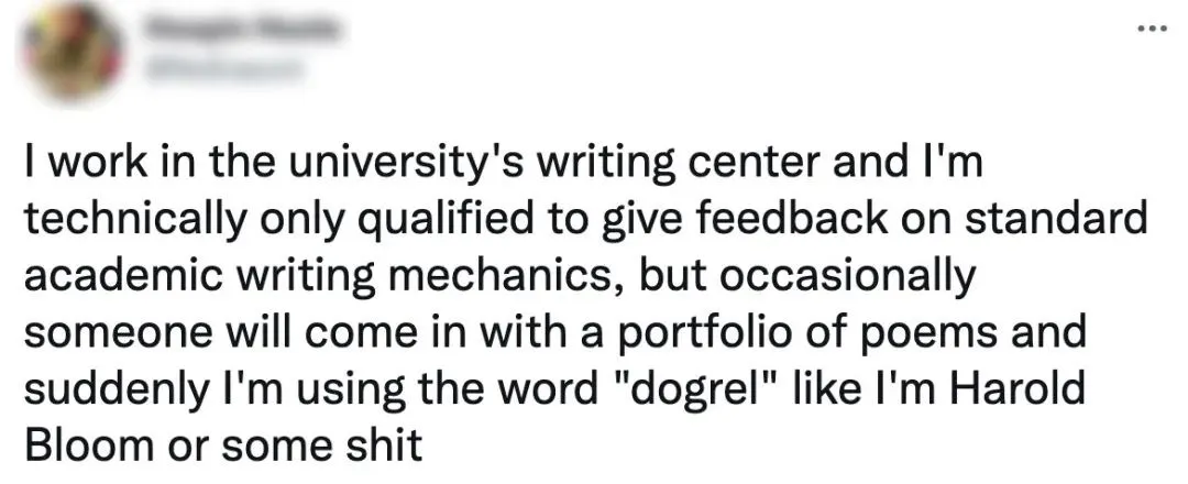 社交平台上,也经常可见写作中心tutor调侃在writing center工作的自己,其实只会最基本的写作技巧,不会的领域全靠瞎bb。