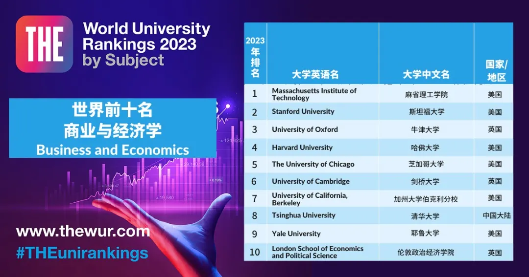 商业与经济学排名主要是基于各大高校商业和管理、会计和金融、经济学和计量经济学等学科的表现,进行评估。今年的榜单包括870所大学,高于去年的794所。