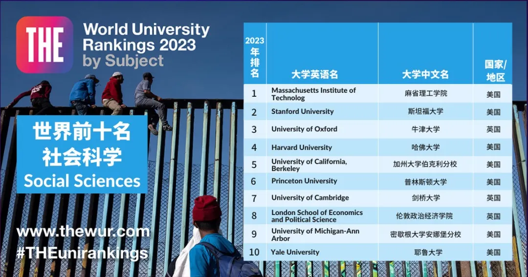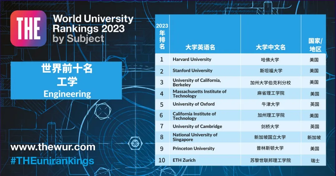 该学科排名采用与THE世界大学排名相同的数据集和研究方法,更新了10门学科在2023年的最新表现,包括:商业与经济学、教育学、法学、社会科学、计算机科学、工程科学、临床与健康、生命科学、理学、心理学。