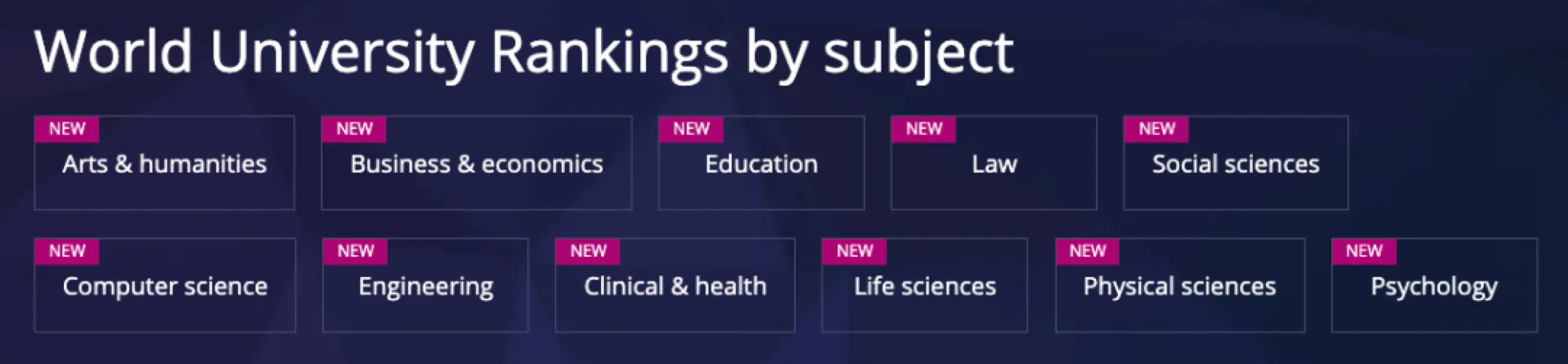 我们将针对商业与经济学、教育学、计算机科学、教育学、工程科学、社会科学这5大热门留学专业的排名进行详细解读,同时也会附上其他学科的排名。