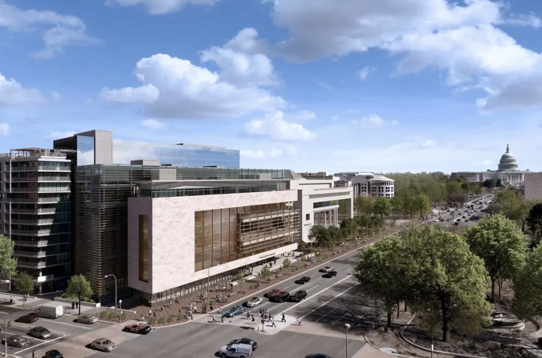 JHU新校区坐落于555 Pennsylvania Avenue NW。在动态教学模式新兴的时代,新校区是一座为现今及未来学术需求而设计,强调灵活性的建筑。
