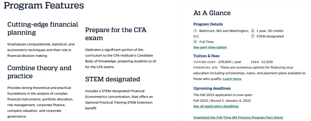 *申请者可以选择在Baltimore和Washington DC校区之间选择全日制金融理学硕士课程。