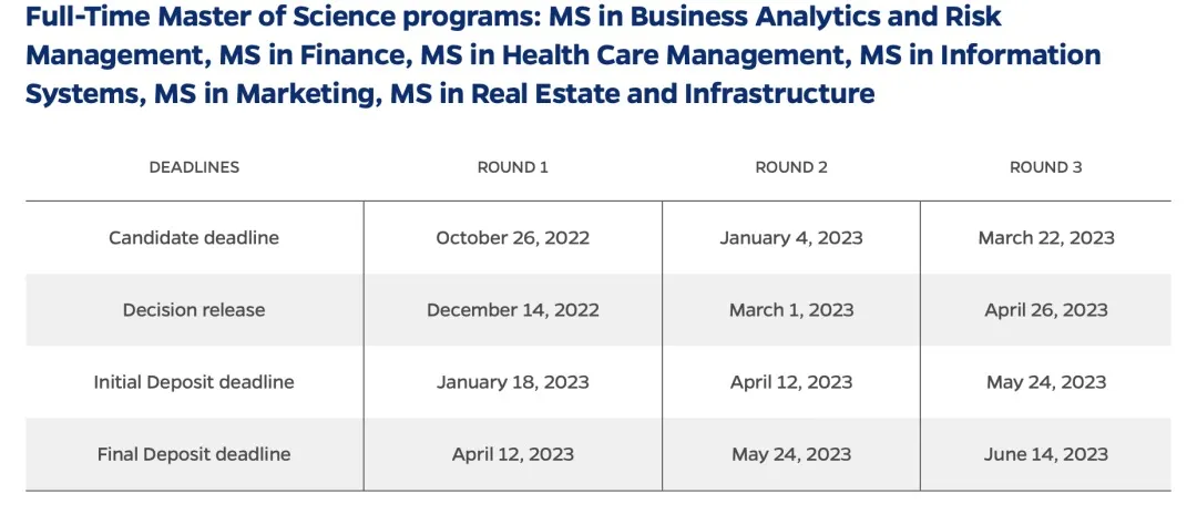 四个专业的申请提交deadline是一样的,分为三个轮次。23 Fall申请截止日期为:10/26/2022,01/04/2023,以及03/22/2023。
