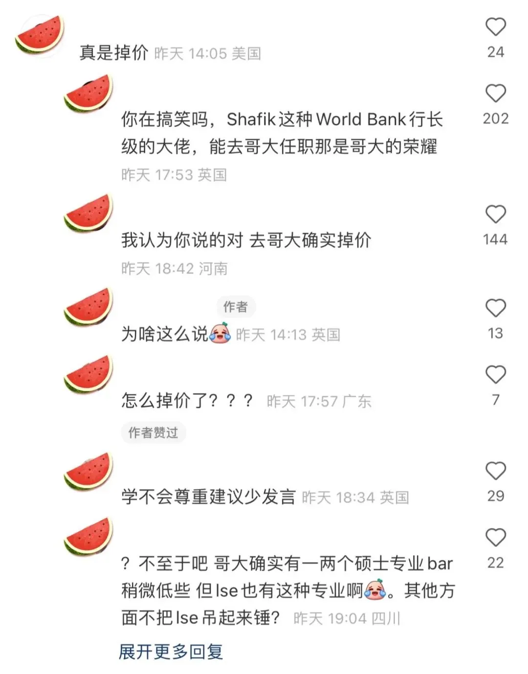 消息一传开,LSE和哥大的同学纷纷在网上开始为自家学校哭喊“掉价”,各大留学生群体也一起吃瓜。
