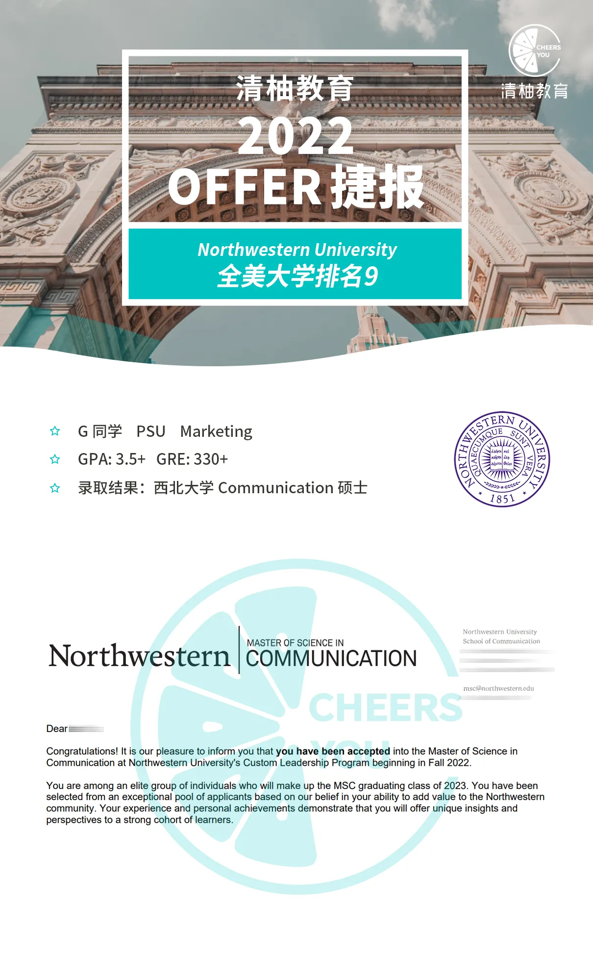 西北大学 Communication:西北大学的传播学项目旨在培养学生学习将沟通 理论与实际应用相结合,并获得在工作场所获得直 接竞争优势所必需的技能。该项目从22年秋季开始 已被认定为STEM指定课程。在该项目中,学生将 主动接受复杂性,同时学习评估和导航错综复杂的 组织结构,以服务于更广泛的沟通目标。