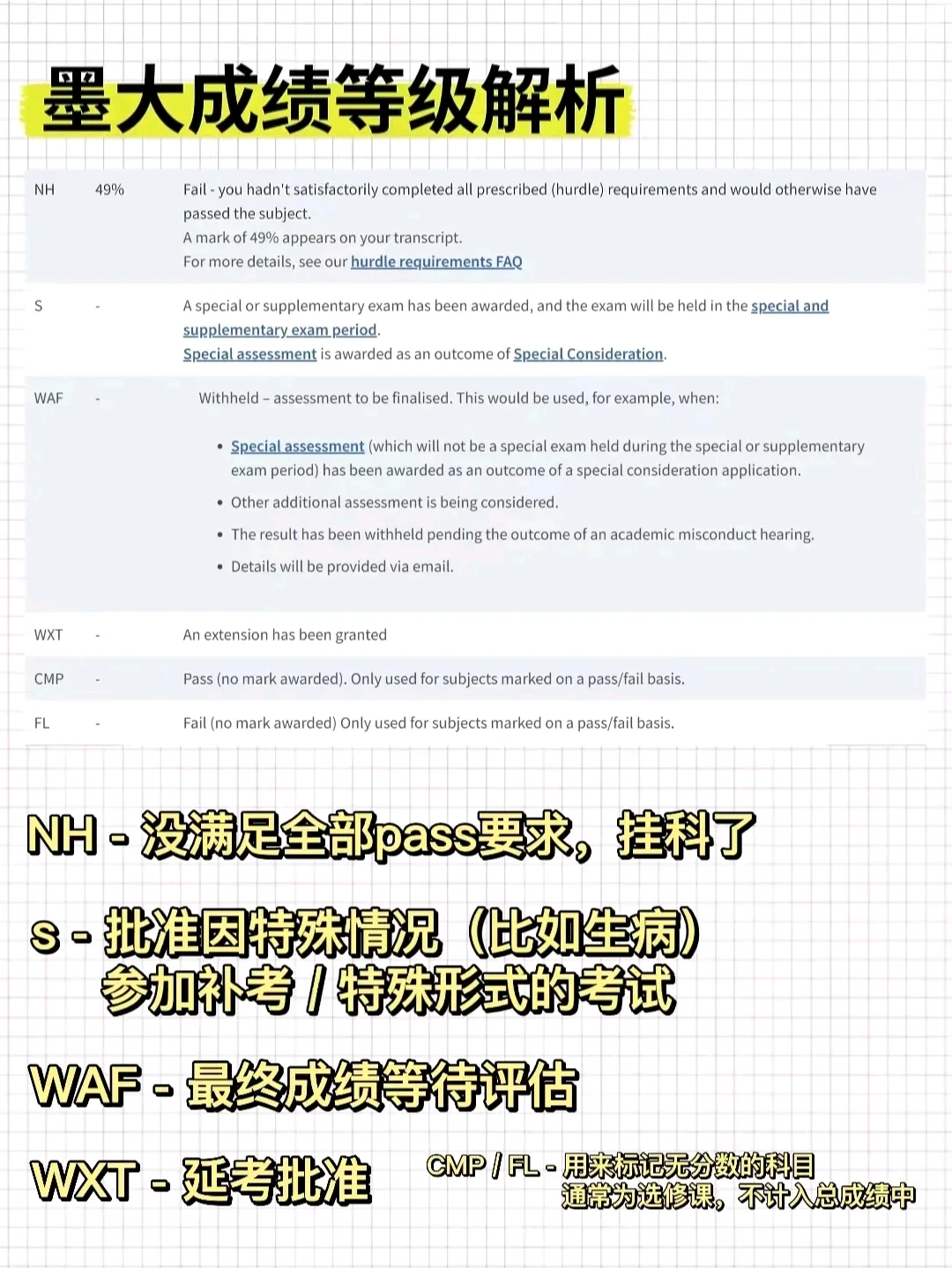 我们都知道,墨尔本大学的成绩单上除了H1/H2A/H2B/H3/P这些常规的grade,还有一些其他的字母等级以及“^”,那WES正式版认证会计入这部分成绩吗❓即用WES免费版计算器进行估算时,需要输入这部分成绩吗❓今天清柚就带着大家来一起看下: