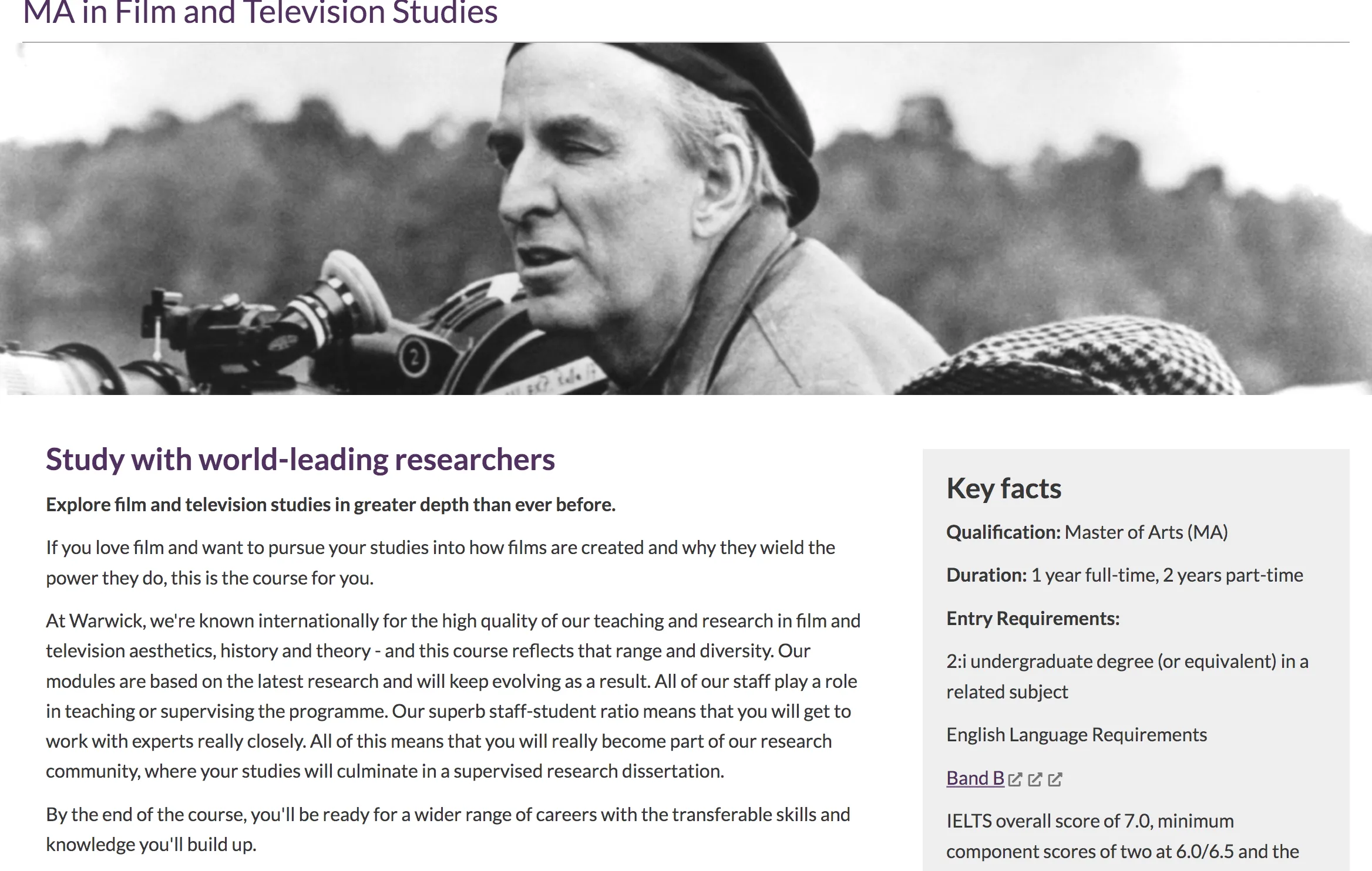 在华威,以电影和电视美学,历史和理论方面的高质量教学和研究而闻名于世。