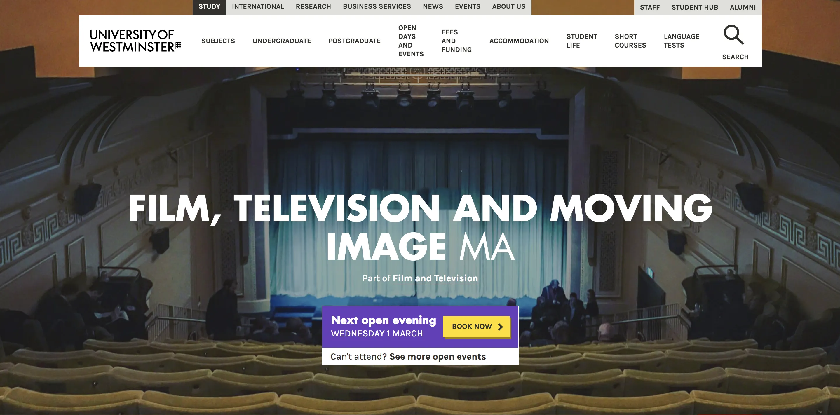 威斯敏斯特大学University of Westminster - Film, Television and Moving Images MA