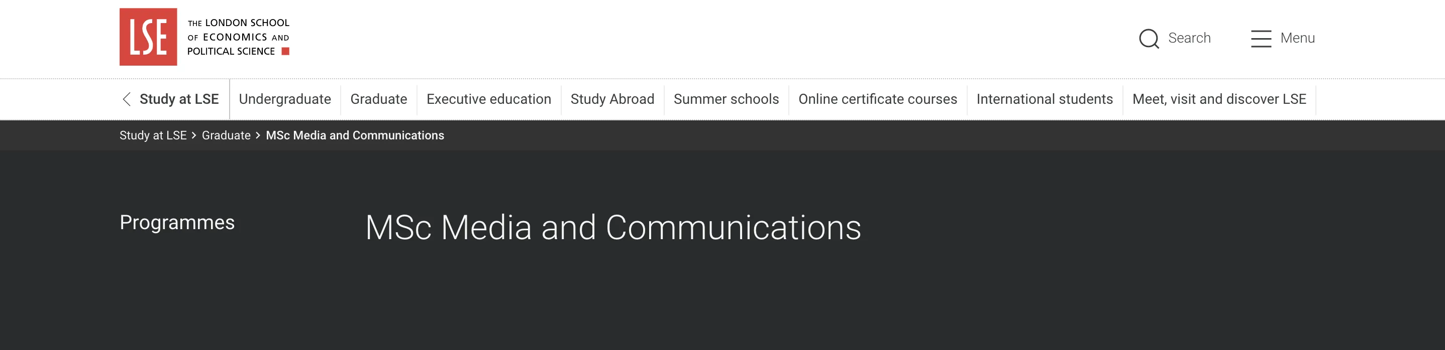 LSE的媒体与传播系是英国第一,全球第三的。LSE的传媒相当理论,由于是传统的社科类学校,其传媒专业多偏政治理论。对综合排名要求较高的同学可以考虑。