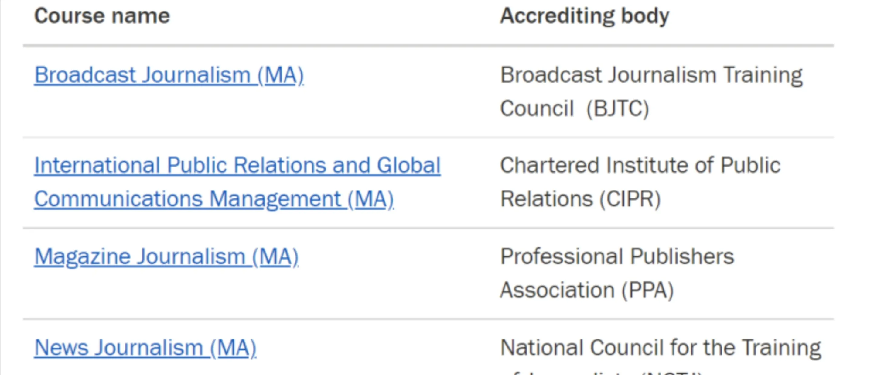 学院与BBC、 BBC Radio、BBC Wales、The Guardian、Times、Channel 4 News、ITV、SKY等媒体保持紧密合作关系,为学生提供丰富的实习资源。开设的专业有: