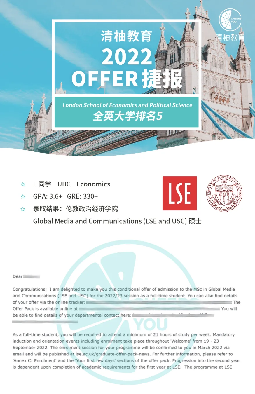 今天Anne老师的学生还收到了一个LSE传媒的Offer,为她感到高兴!