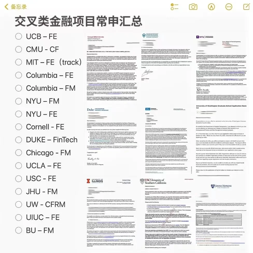录取:CMU-CF / CU-FM / Duke-FinTech / NYU-FE