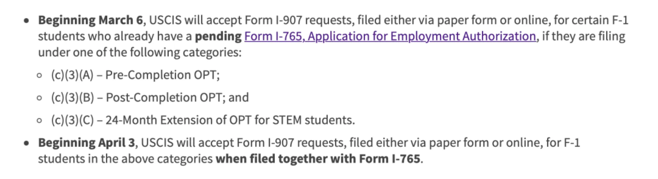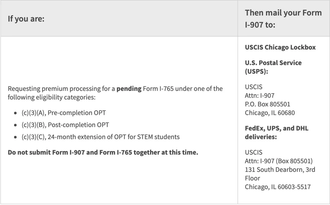 2023年4月3日起,移民局开始接受上述A~C类的F-1学生在递交I-765申请表的同时,递交I-907加急申请表。