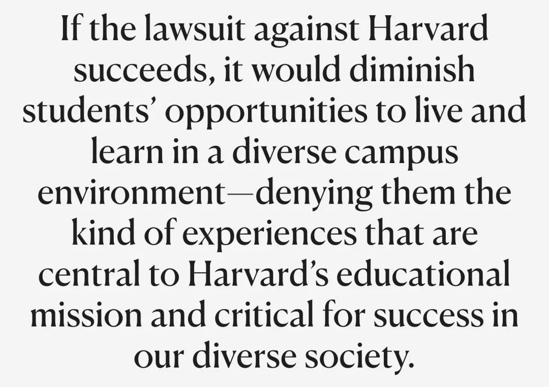 哈佛大学言之凿凿:我们担心此举会影响学校的多元化,甚至对于其他族裔造成不公。
