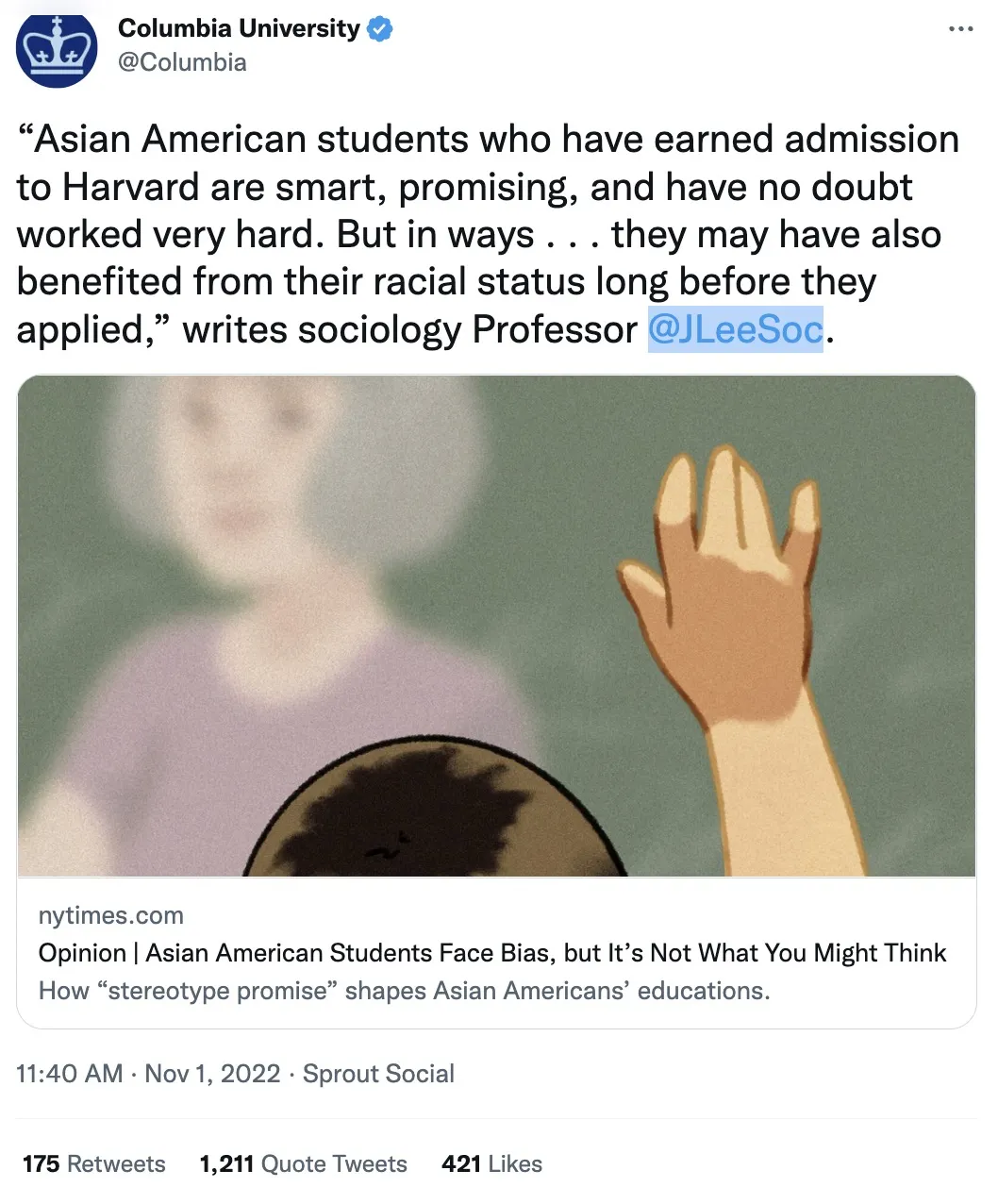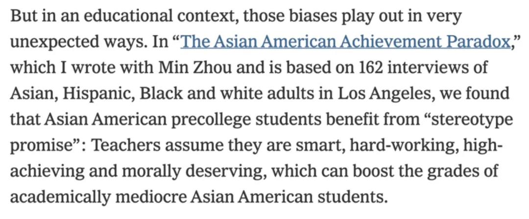 这番言论的出处来自哥大社会学教授Jennifer Lee发表在《纽约时报》上的一篇文章。
