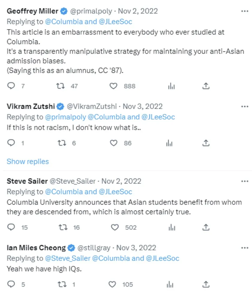 哥大官方Twitter曾发表迷惑言论:“虽然被哈佛录取的亚裔学生聪明勤奋、年轻有为,但他们长期以来都在享受种族带来的优势。”