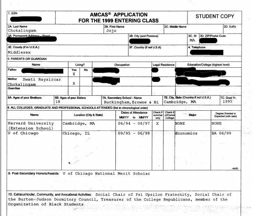 亚裔Vijay Chokalingam曾是芝大的学生,他希望毕业后学医,但苦于成绩平平。尤其在看到比他更优秀的亚裔朋友被医学院拒绝后,他意识到:自己能申到的机会几乎为零。