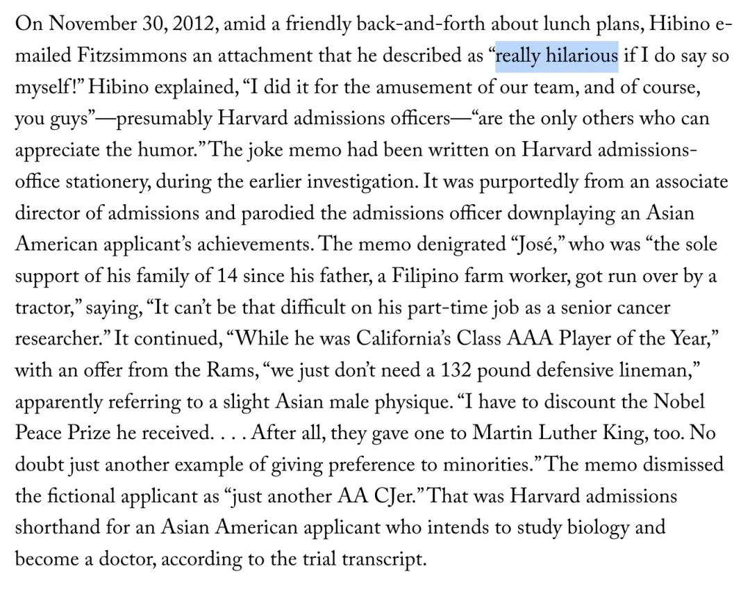 更为过分的是,一位在哈佛任职超过50年的招生官,和波士顿平权办公室负责人沆瀣一气,甚至以亚裔学生的苦难取乐。