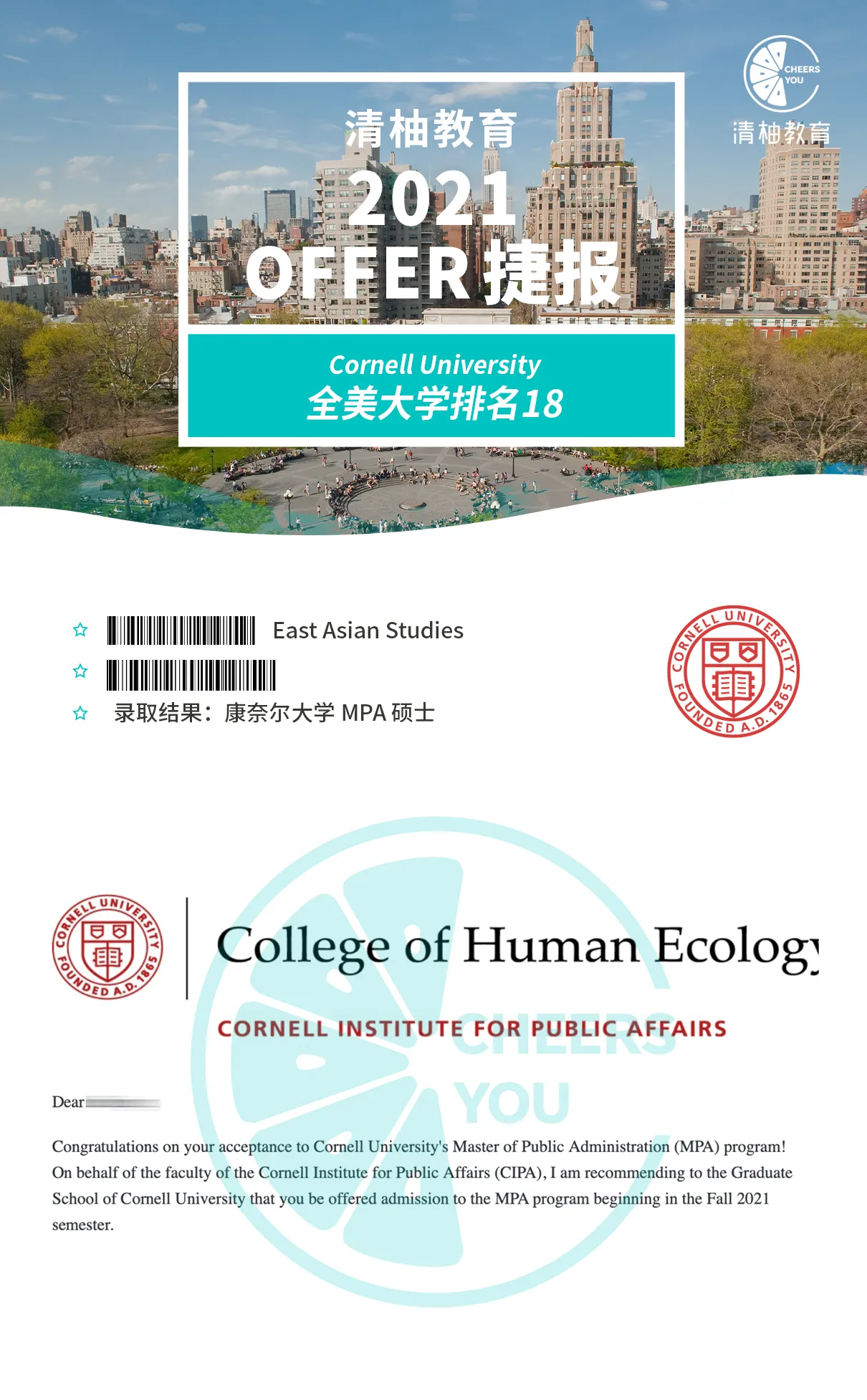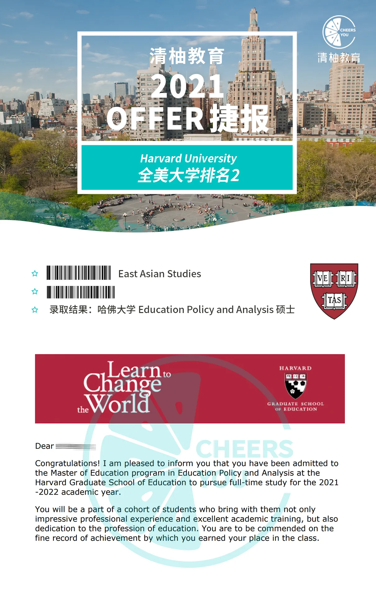 例如之前清柚有一个美本的学生,GPA只有3.4,但因为他的实习和研究经历非常很丰富,文书也写得很有趣,最后被耶鲁大学的MA East Asian Studies录取(他本人也很震惊的程度)。