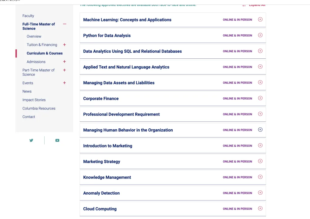 择校时要根据官网描述将重点放在课程设置以及项目开设学院,匹配与自己过往学习经历契合的项目。假设项目设置在工程学院信息学院,那说明学生需要有扎实的数学和计算机相关的知识基础,开设在商学院,则需要有商业理论支持作为依托。