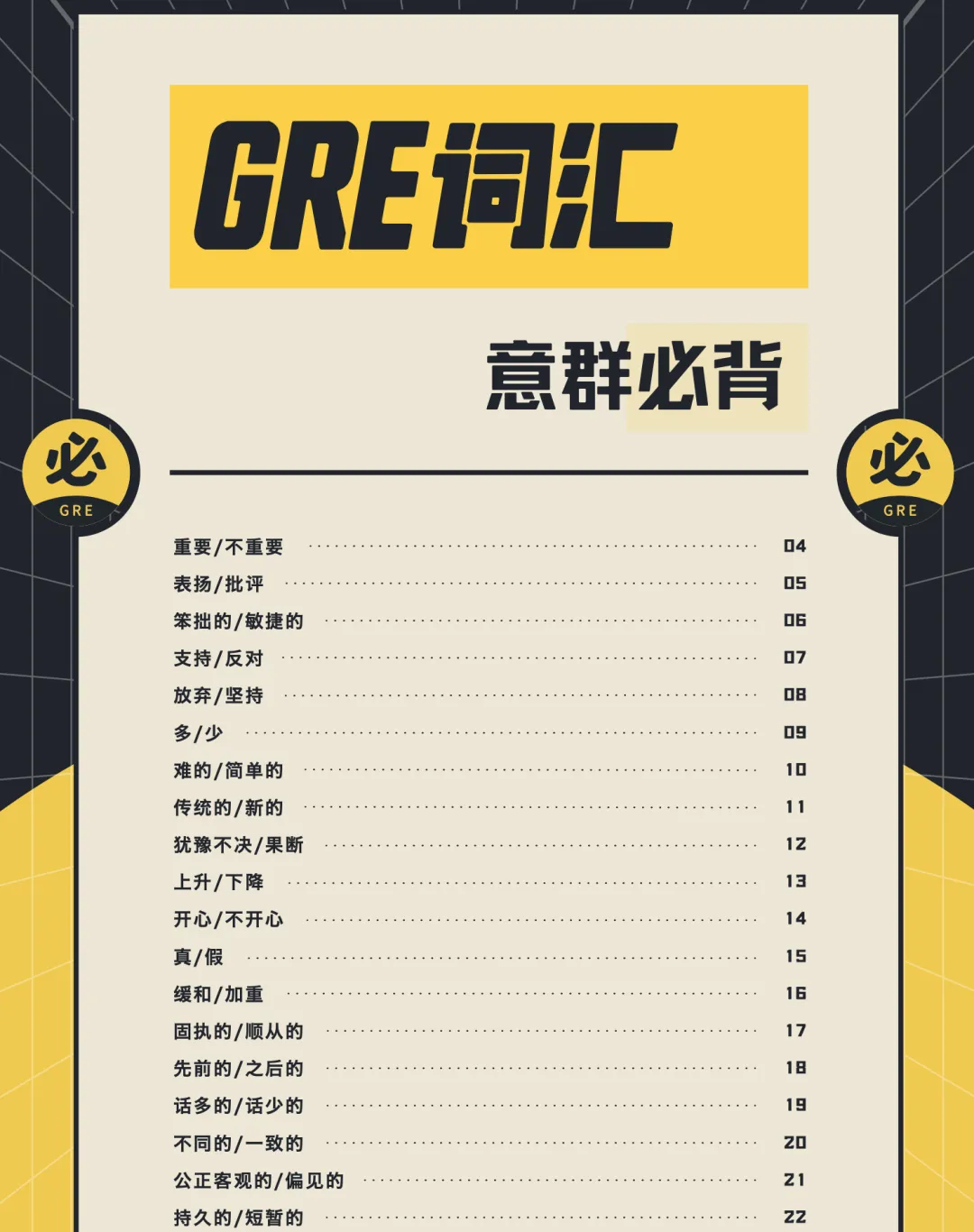 《GRE词汇-意群必背》、《GRE逻辑联结词》等