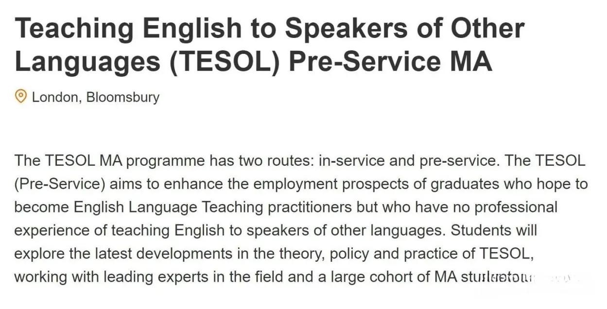以UCL的TESOL项目为例,该项目根据学生是否具有教学经验分为两个不同的项目。