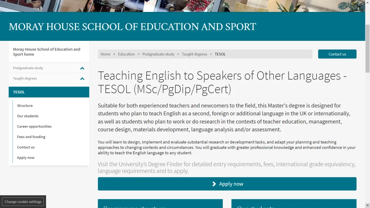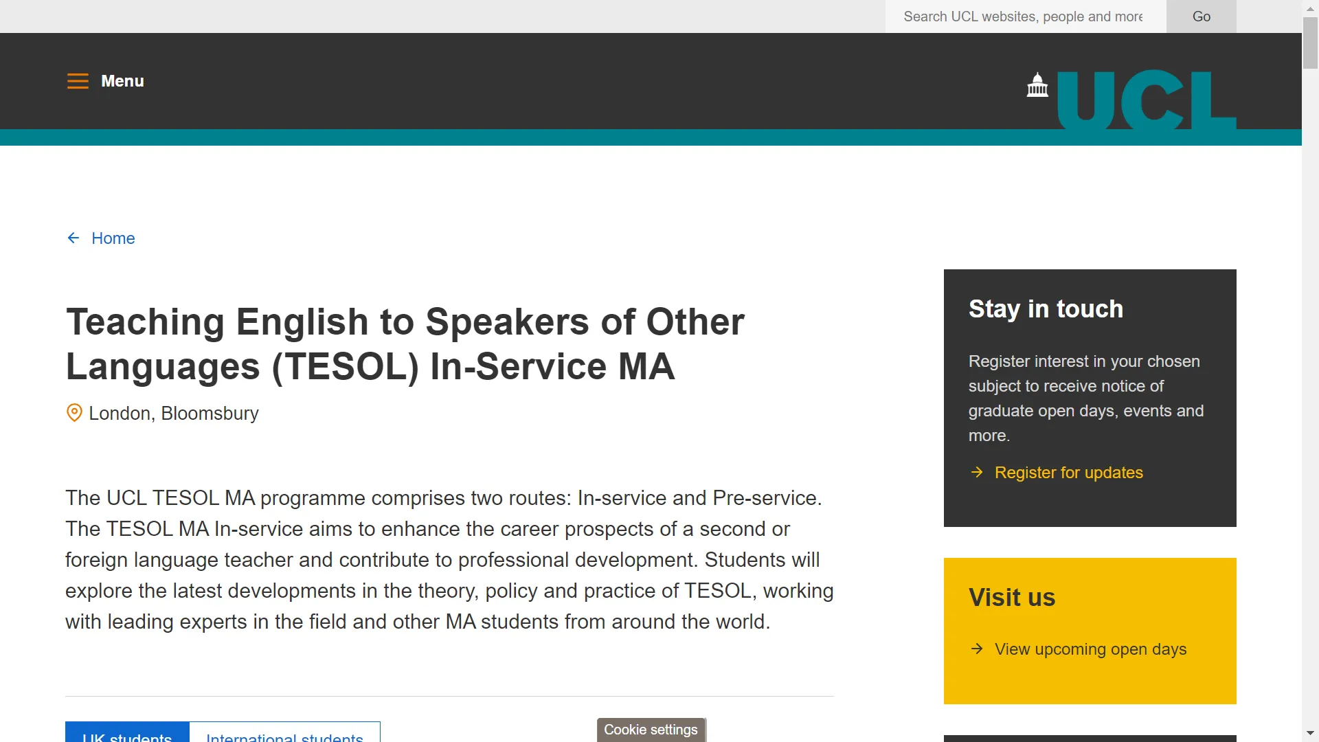 Teaching English to Speakers of Other Languages (TESOL) In-Service MA适用于有两年以上全职教学经验的申请者;
