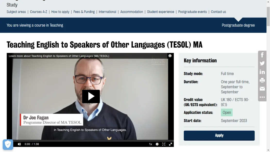 除了本文介绍的UCL的TESOL项目以外,也在这里推荐几个同方向的专业项目和申请要求: