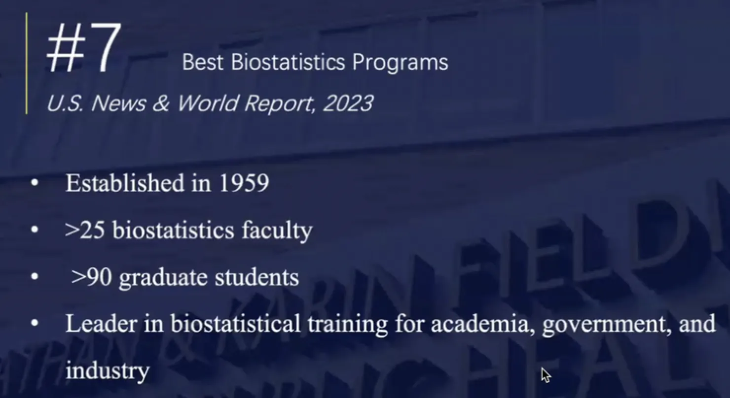 UCLA生物统计学项目全美排名第七,是在学术界、政府和工业界的生物统计培训领域中的领导者。该部门创立于1959年,教师人员数量大于25,毕业生超过90人。