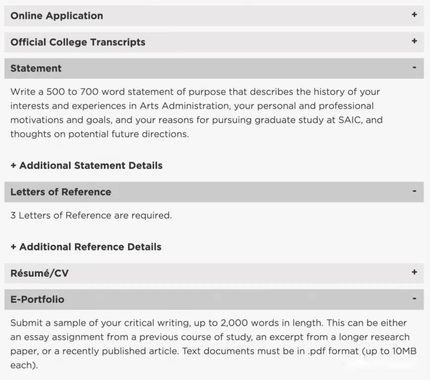 - 芝加哥艺术学院School of the Art Institute of Chicago - 艺术管理与政策硕士Master of Arts in Arts Administration and Policy