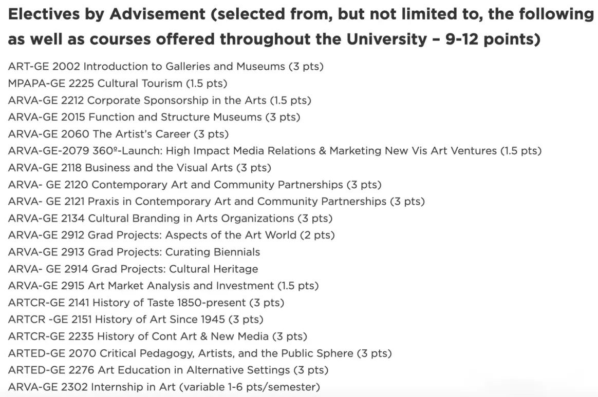 - ARVA-GE 2299 Research in Visual Arts Administration (2 pts)