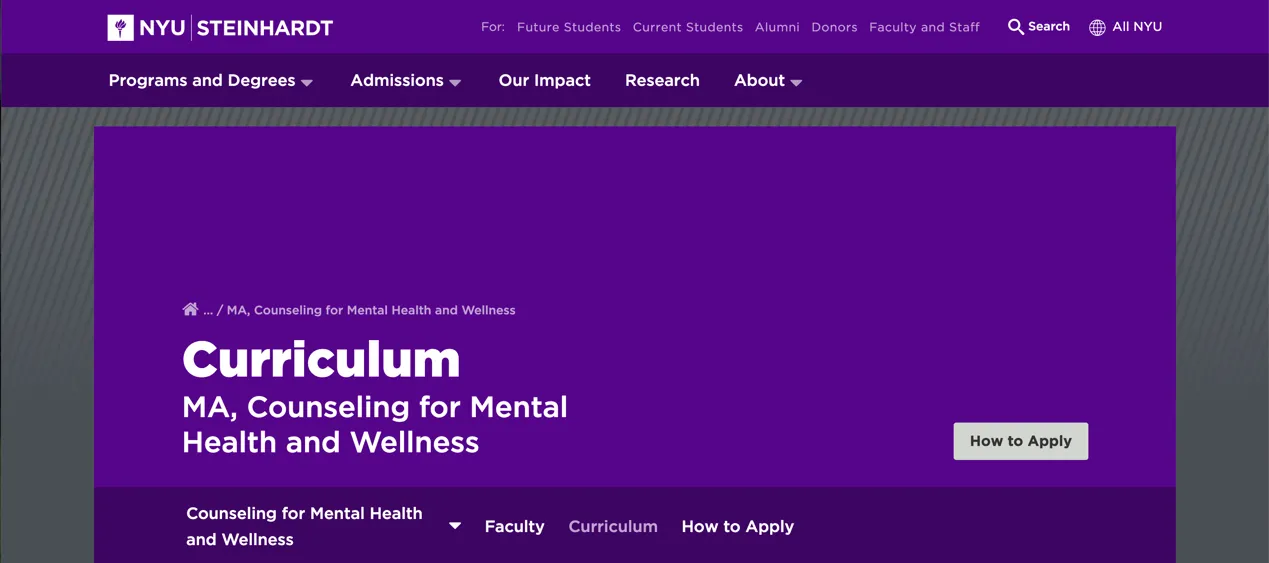 https://steinhardt.nyu.edu/degree/ma-counseling-mental-health-and-wellness/curriculum