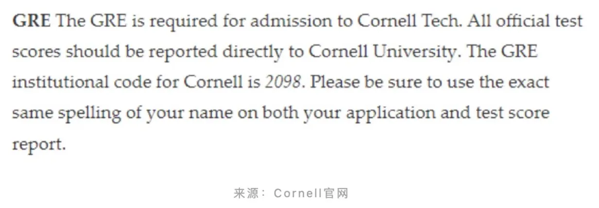 康奈尔工程学院明确提出,必须提交GRE成绩。