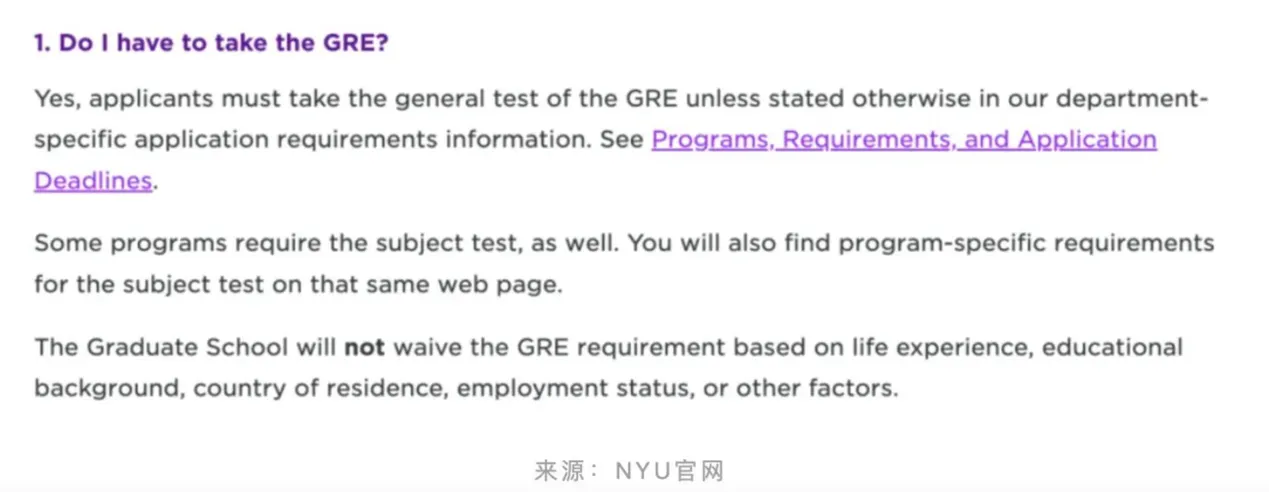 在23Fall的申请中,NYU文理研究院明确要求所有申请人必须提交GRE成绩,不会因为申请人的生活经历、教育背景、居住国家、就业状况或其他因素而放弃GRE要求。