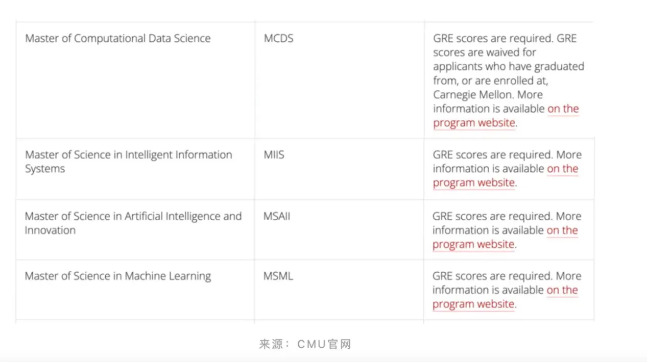CMU计算机科学学院的大部分专业需要提交GRE成绩,包括计算数据科学、智能信息系统理学、人工智能与创新理学等。