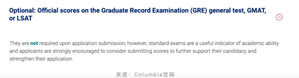 哥伦比亚大学大多数项目已恢复GRE成绩要求,目前仅有少数学院/专业不强制要求GRE成绩,如: