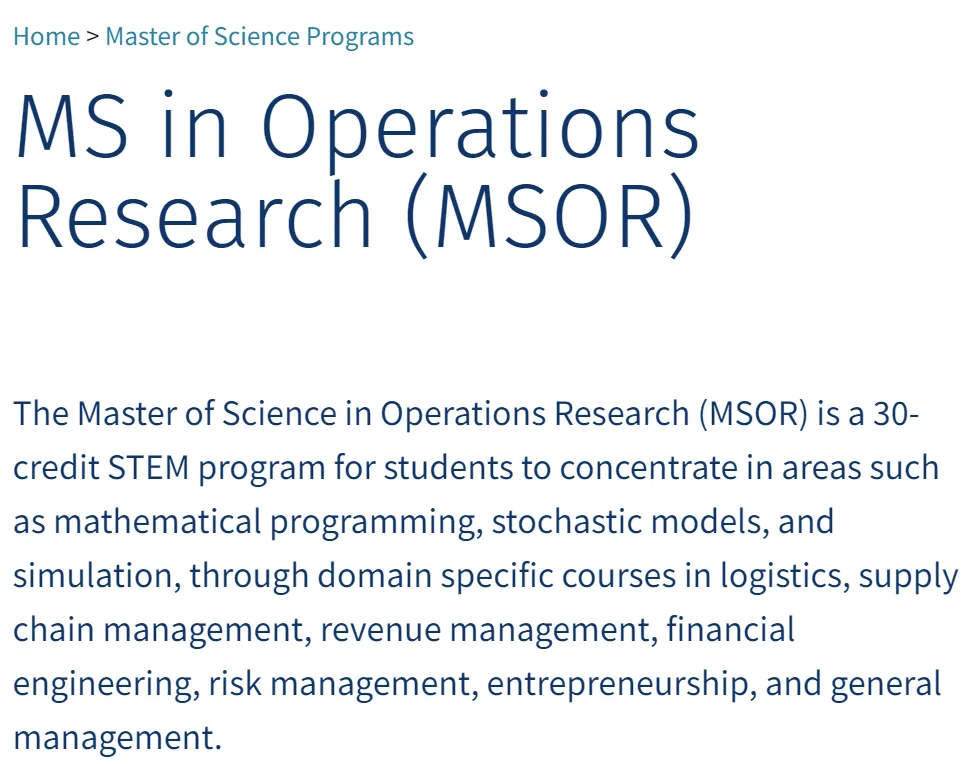 项目链接:https://www.ieor.columbia.edu/masters/operations-research