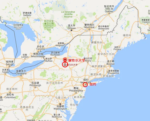 康奈尔虽然在纽约州境内,但是相对来说还是有点偏远,位于纽约州北部汤普金郡的伊萨卡市,距离纽约车程4个半小时,公交大巴一般也在4到6小时。