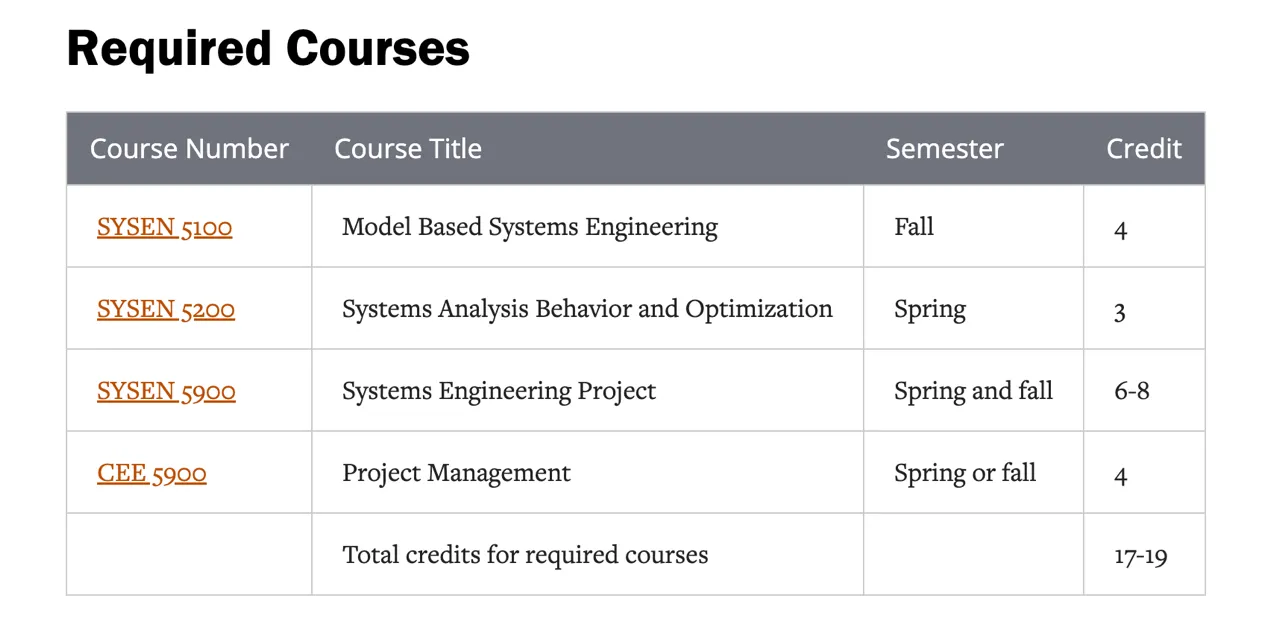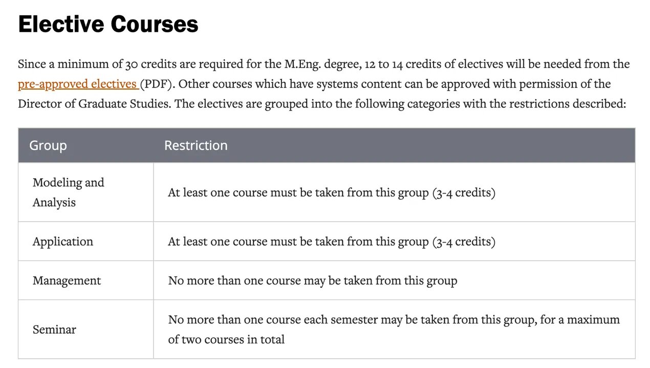 该项目选课时的灵活度很高,除了三门必修课和系统工程项目之外,其他课程的选择可以根据自己的学术兴趣以及未来的职业规划自行决定。
