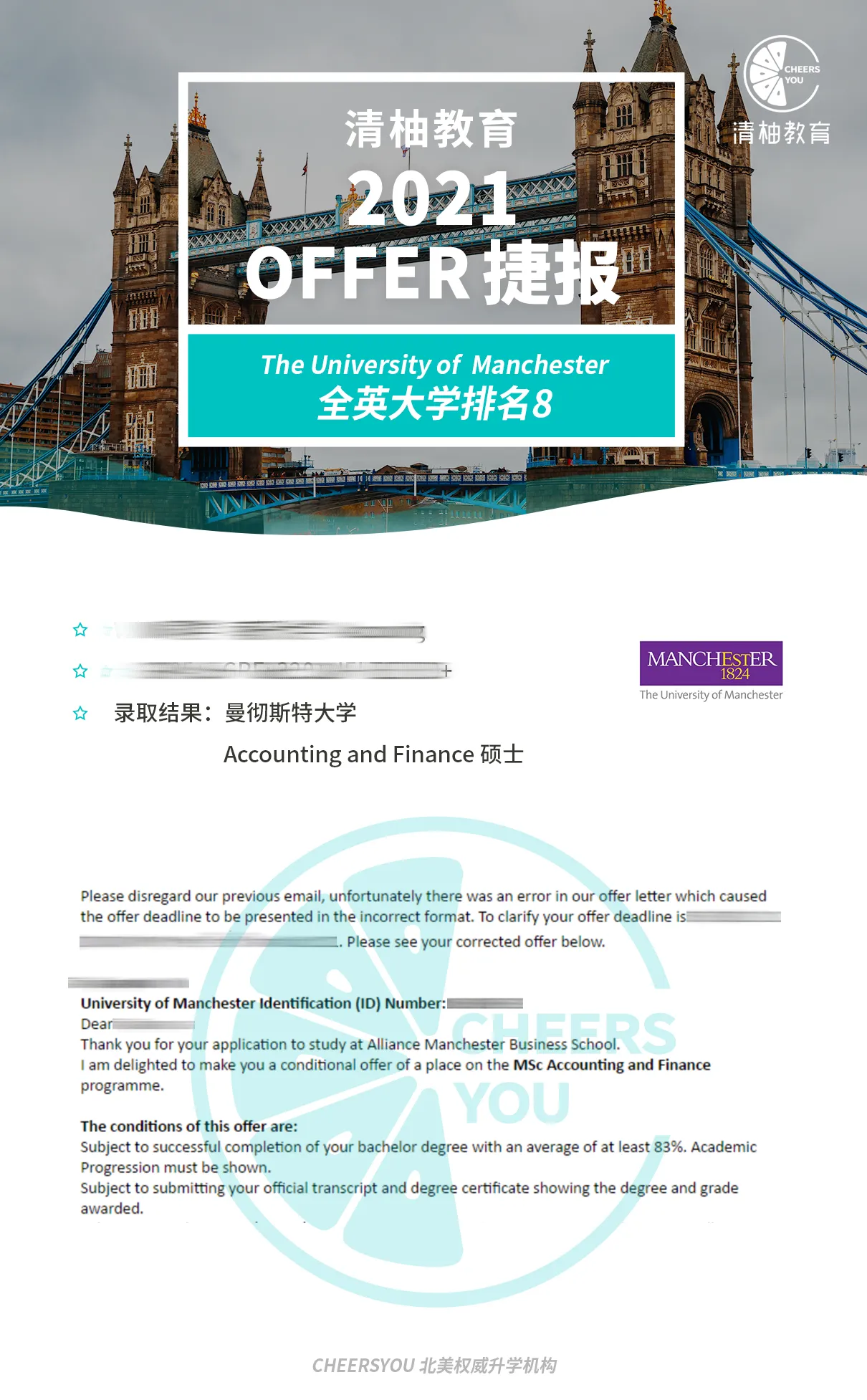 曼彻斯特大学的Masters (MSc) in Accounting and Finance是CFA认证项目,虽未明确要求计量类的背景,但很多同学被拒绝的原因是数学学科背景不充足。